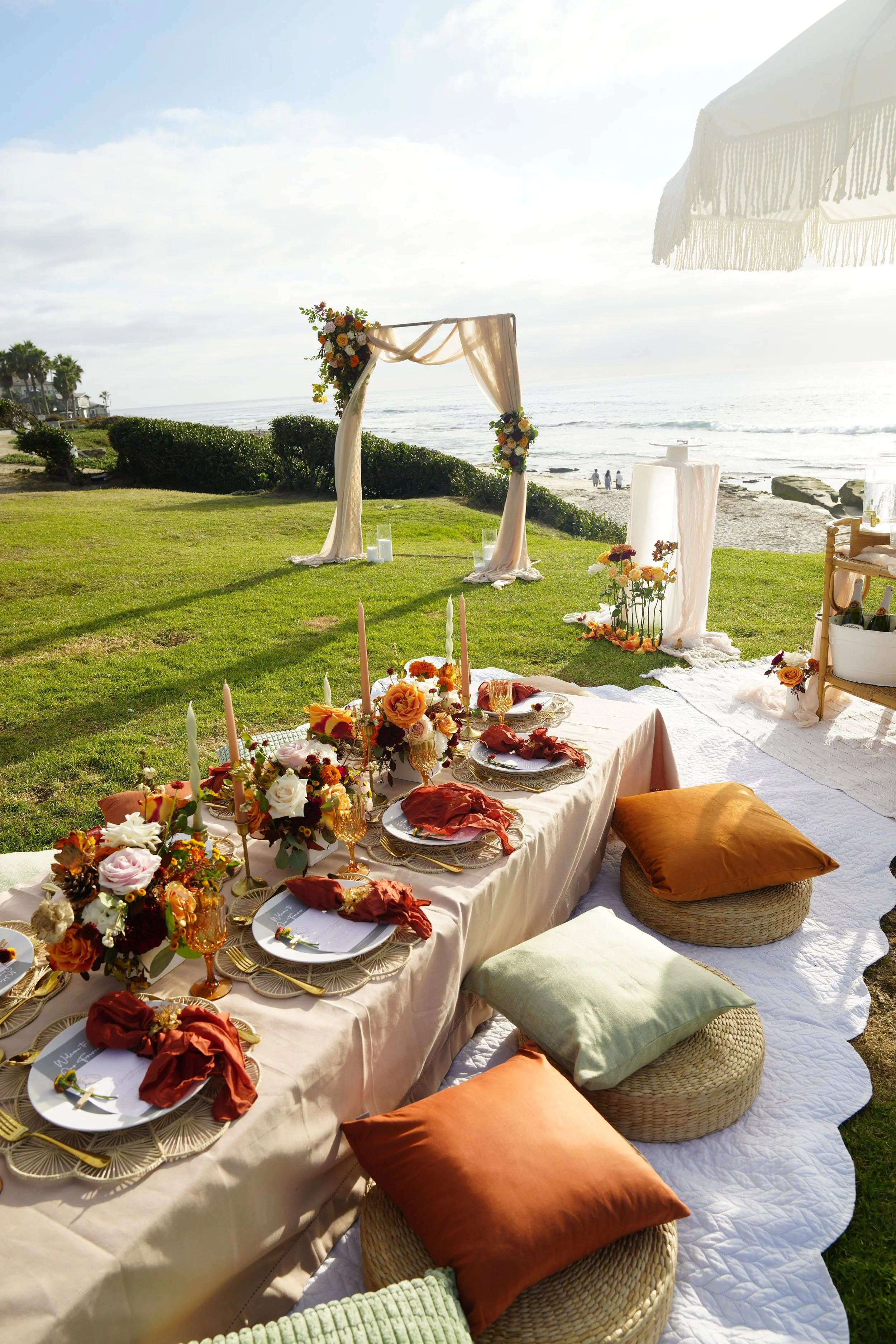 Our elopement decoration service crafts intimate, photo-ready environments that reflect your style and story. We design and install tasteful, low footprint decor for micro-ceremonies and picnic elopements - from minimalist modern and boho-chic to rustic vineyard or coastal elegance.